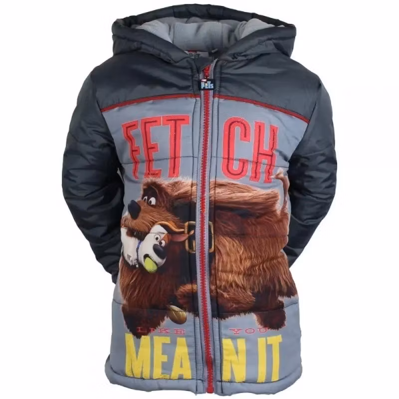 Jacka med motiv från filmen Husdjurens hemliga liv. Jackan har en huva och dragkedja fram.