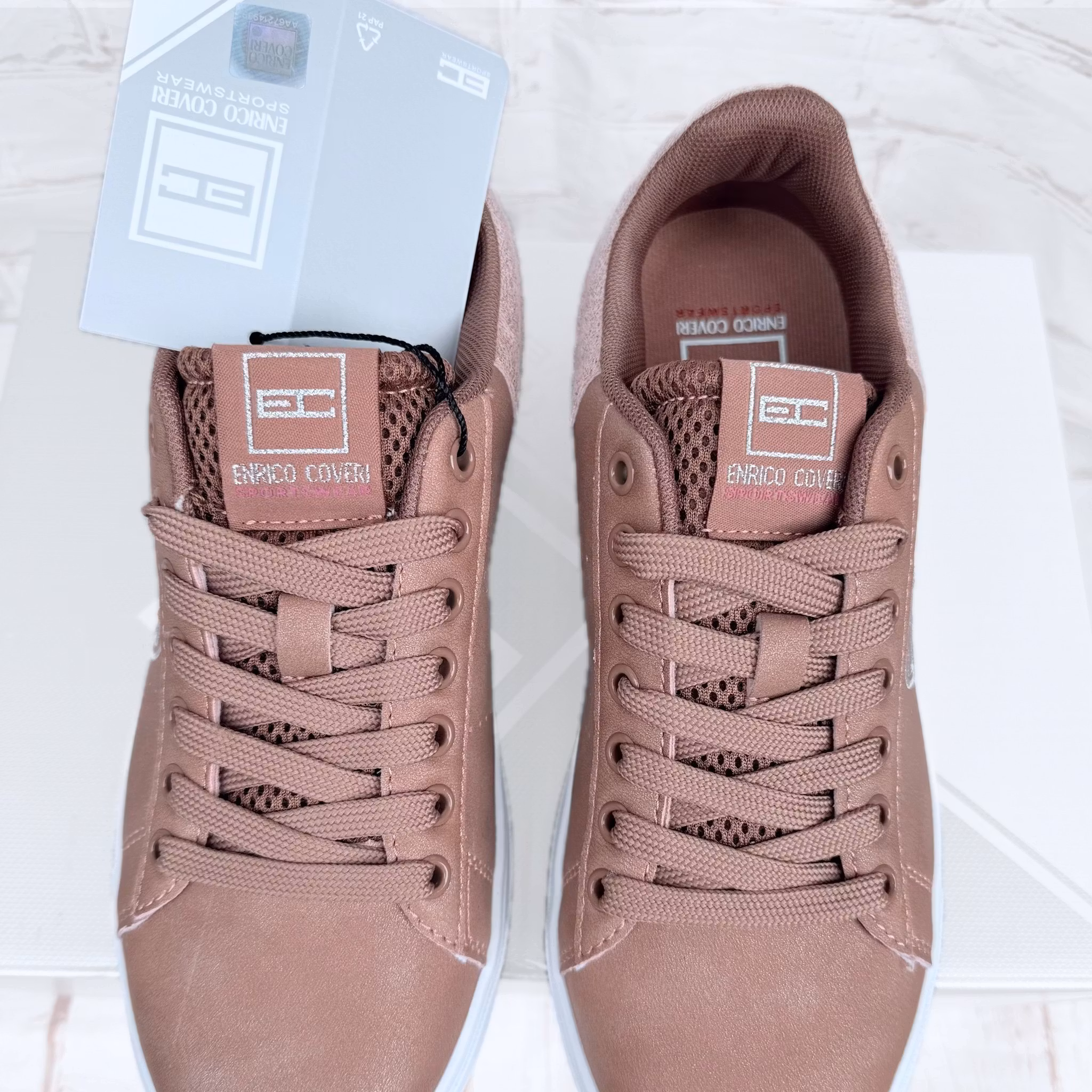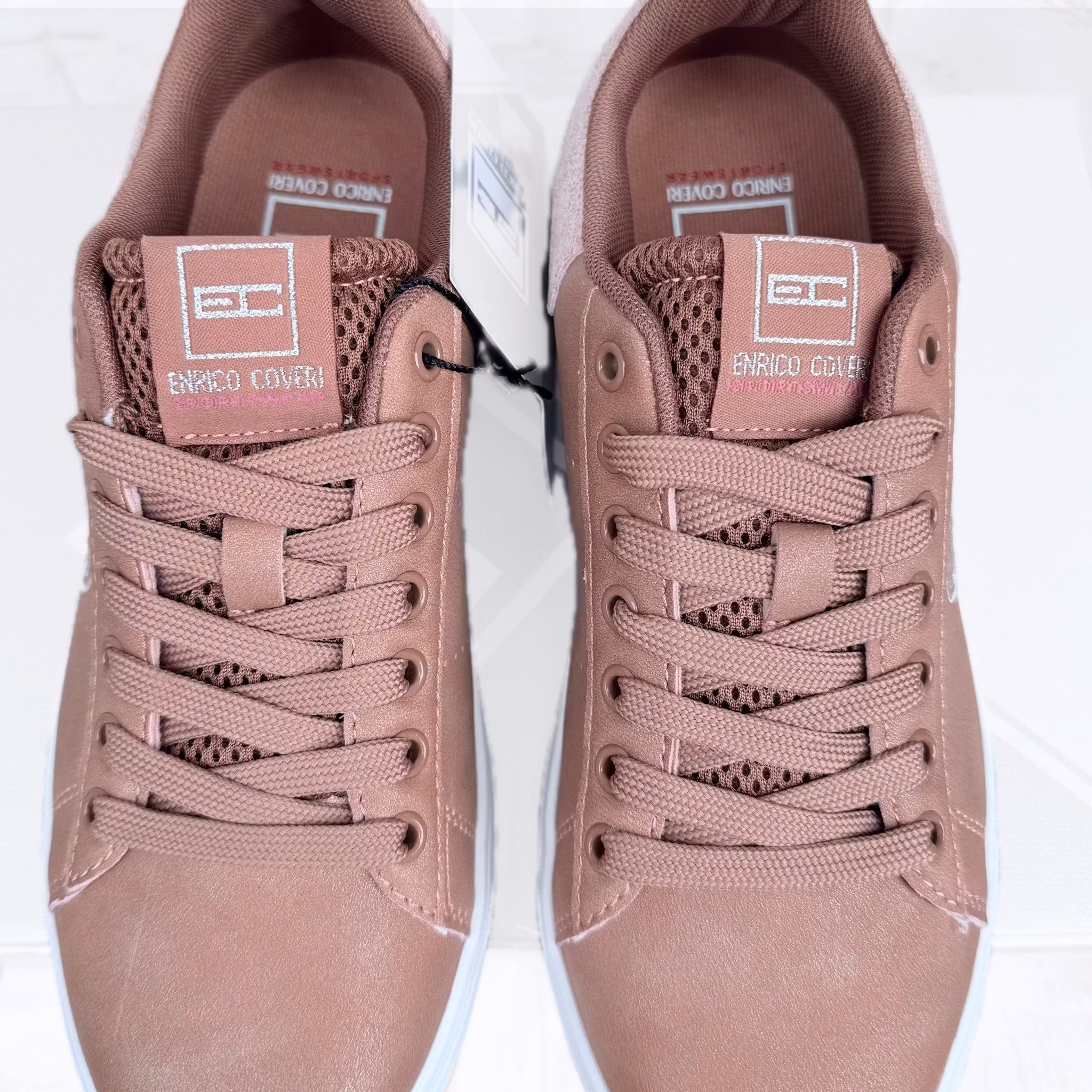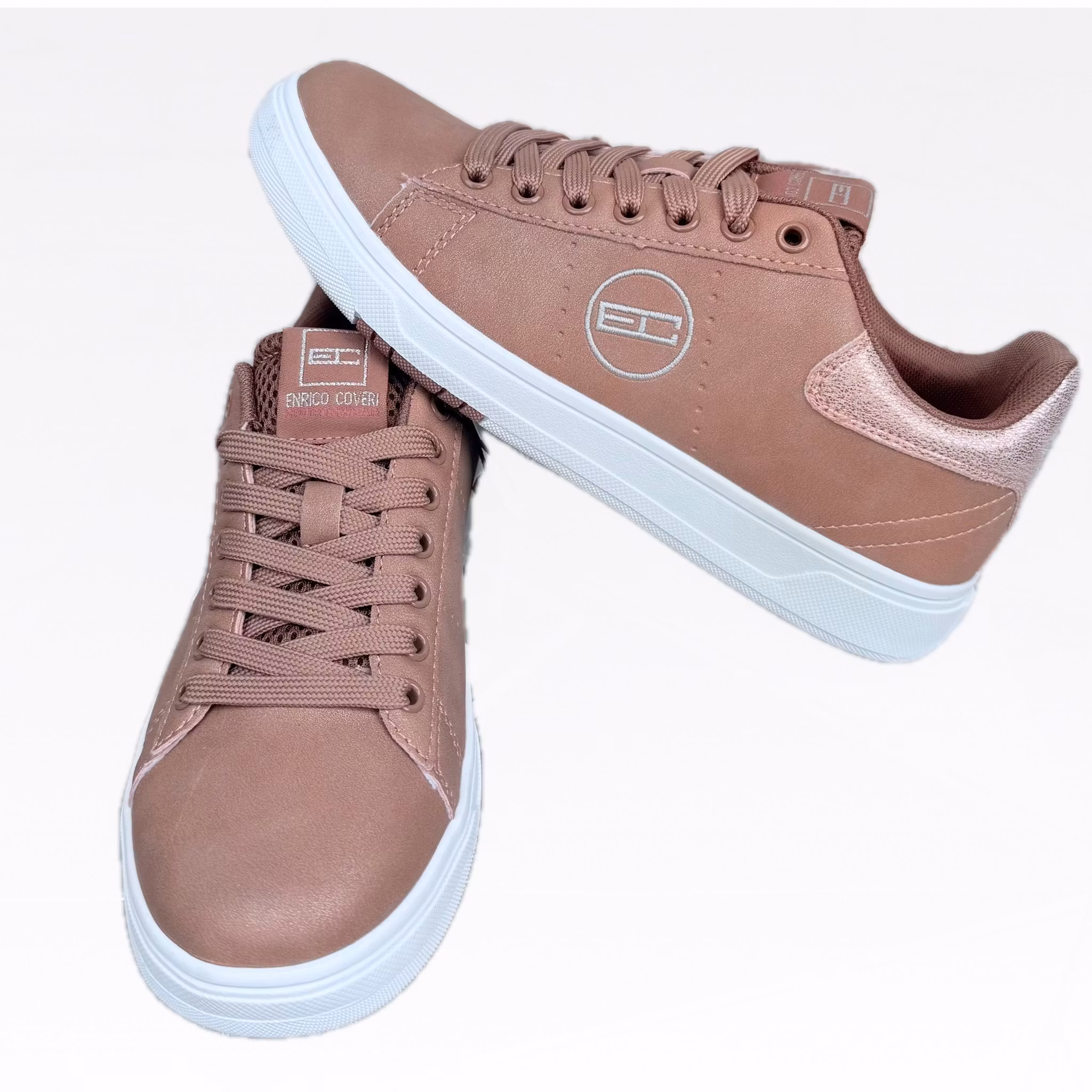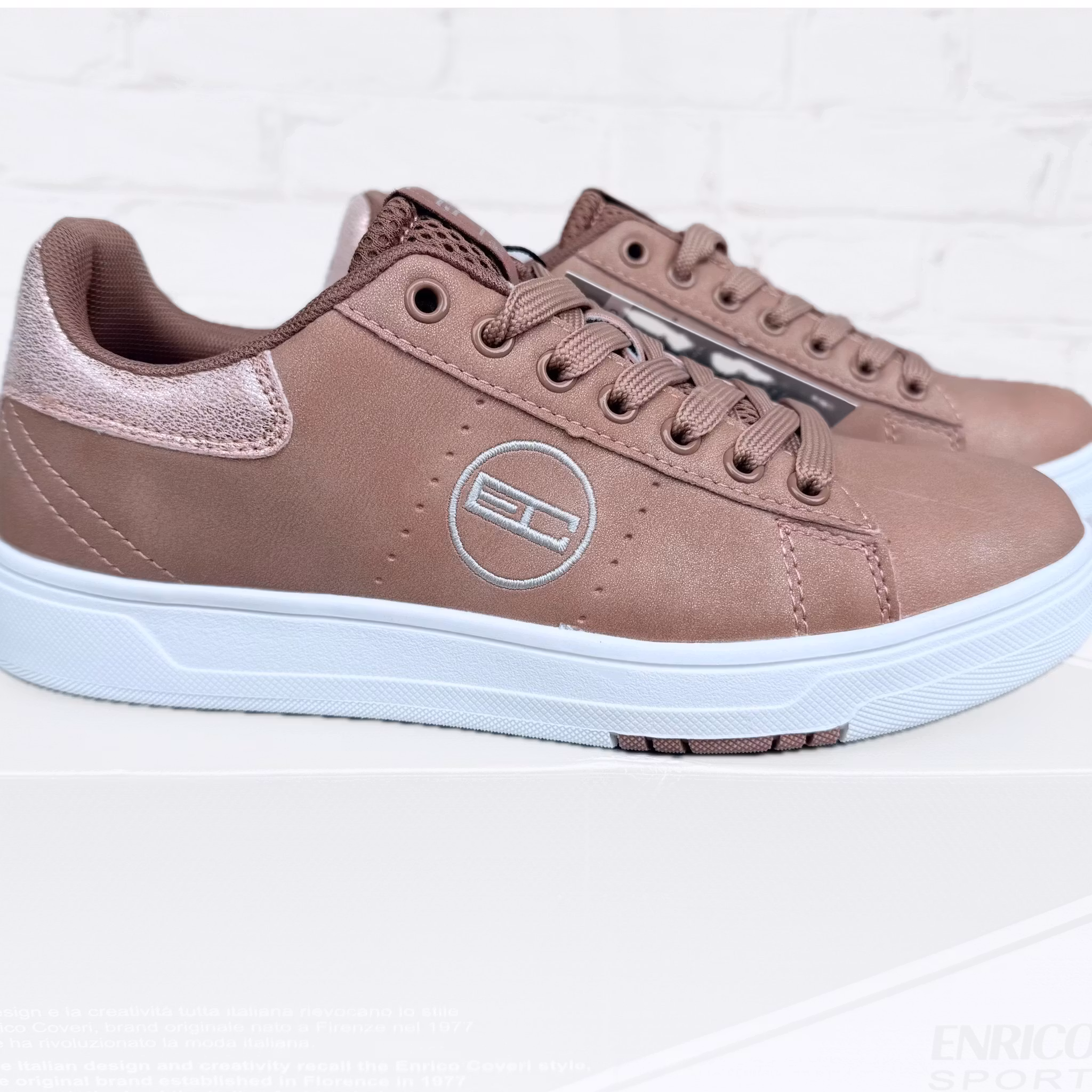 Enrico Coveri Dam Lace Up sneakers är ett snyggt och bekvämt val för vardagligt bruk. De har en klassisk låg design med snörning och en signatur EC-logotyp på sidan.